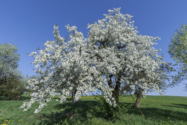 Arbre forestier élégant produisant des cerises sauvages, apprécié pour sa floraison blanche.