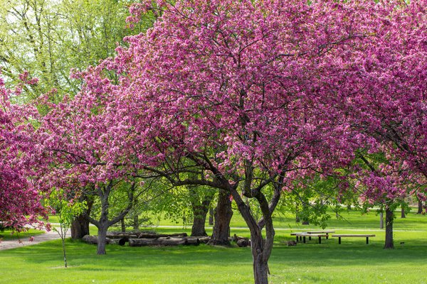 Petit arbre décoratif apprécié pour sa floraison printanière et ses fruits colorés persistants en automne.