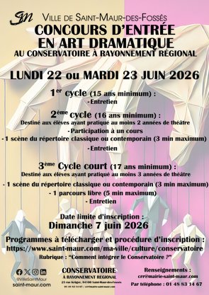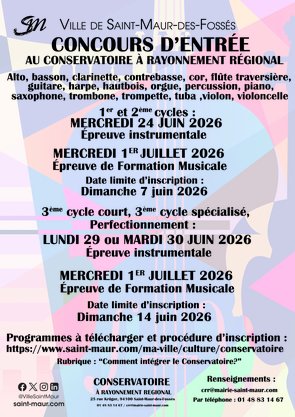 Les tarifs sont téléchargeables en cliquant ici. Le Conservatoire applique le quotient familial pour les Saint-Mauriens. Cliquez ici pour en savoir plus.
