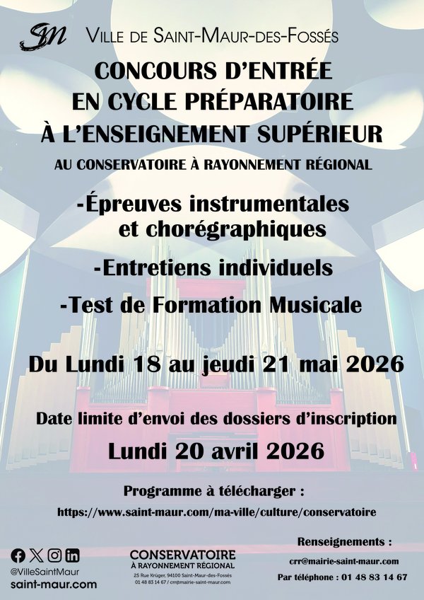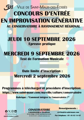 Les cours d'initiation à la Formation Musicale (FM) sont réservés aux enfants saint-mauriens scolarisés en CP ou CE1 à la rentrée 2026-2027.